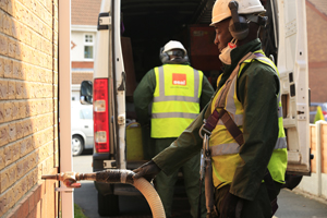 Our technicians drill a series of holes approximately 22mm in size at set intervals of 1.35m or less (the pattern) in the outside wall of your home. Our Instafibre blowing machines will then blow material into the cavity after which we fill the holes up with a mortar mixed to match the original, so that you don’t notice them. An average installation takes between 2 – 3 hours and we tidy up afterwards.